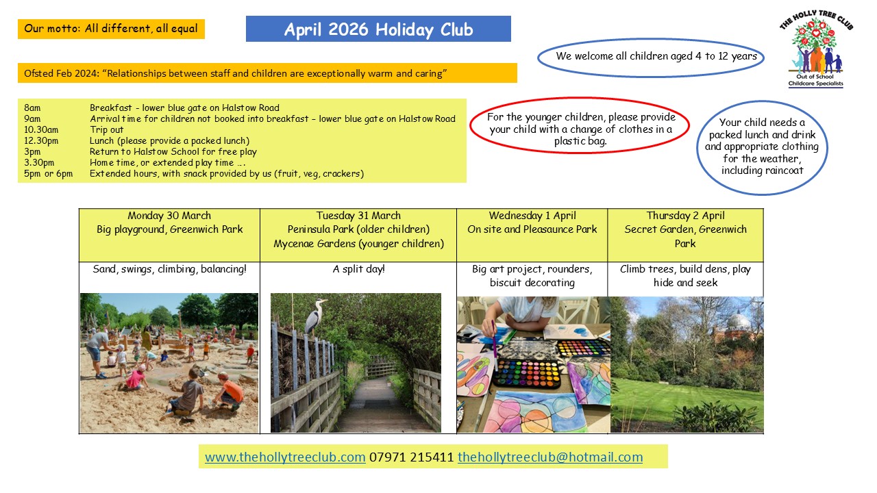 Please complete the Holiday club booking form and email/whatsapp to thehollytreeclub@hotmail.com or 07971 215411